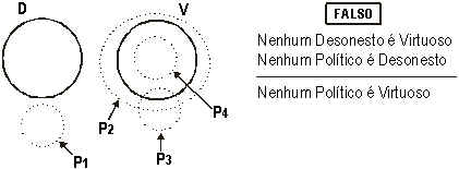 Como nenhum Desonesto é Virtuoso, desenhamos dois círculos sólidos sem nenhuma parte em comum. Basta agora desenhar todas as posições para os Políticos tal que não haja nenhuma posição em comum com os Desonestos (Ok, ok, concordo que este exercício é totalmente irreal!).